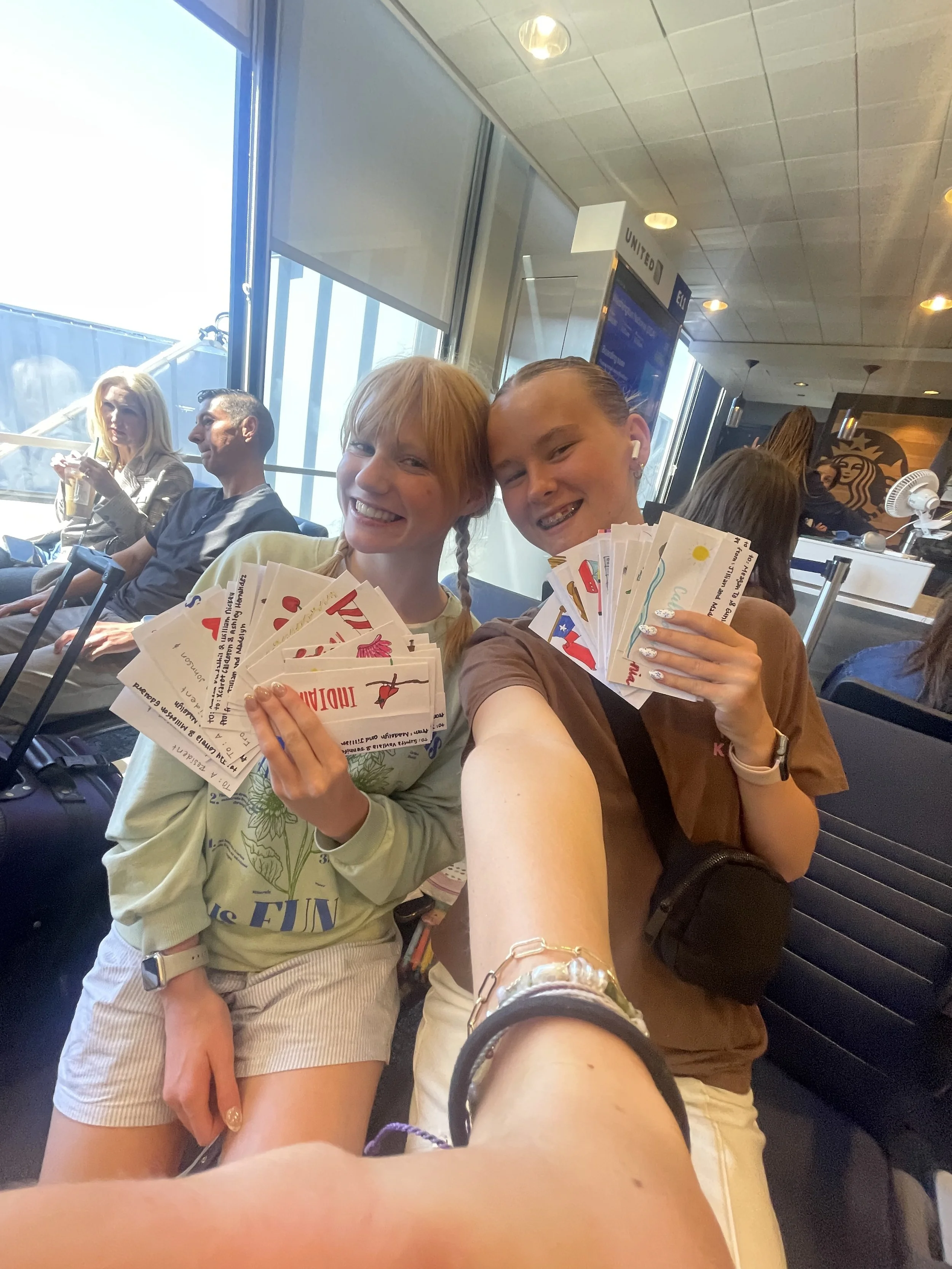 To add a personal and memorable touch, Madelyn and Jillian prepared a set of handmade letters for each group in attendance. Each letter featured the name of the state represented, illustrations of iconic items associated with that state, and a heartfelt good-luck message. This creative gesture reflected the mission of Lives Through Letters itself—using words and thoughtfulness to foster connection, encouragement, and kindness.